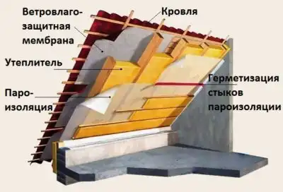 Часто применяется необрезная или обрезная доска, а также подконструкция для монтажа гипсокартона. Рекомендуем проклеивать стыки паробарьера двусторонней клейкой лентой, для сохранения в местах стыков пароизоляционных свойств материала. Обязательно следует проклеивать стыки паробарьера в помещениях, эксплуатируемых с повышенным влажностным режимом, например, в ванных и кухнях.